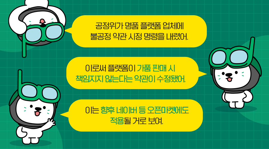 이번 시정 명령이 명품 플랫폼에 그치긴 했지만 가품 유통이 사회적 문제로 대두되고 있는 만큼 유통 업계에서는 공정위의 향후 불공정 약관 실태조사 대상이 이커머스 최대 사업자인 네이버를 비롯한 오픈마켓을 정조준할 것이라는 관측이 나와요. 온라인 쇼핑 시장에서 네이버는 거래액(GMV) 기준 분기 거래액 6조 원 대의 선두 사업자이지만 이와 동시에 국내에서 가장 많은 위조품이 유통되고 있기 때문이에요.