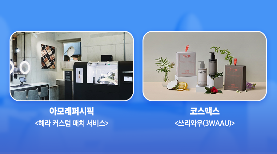 코스맥스는 지난 3월 맞춤형 화장품 플랫폼인 <쓰리와우(3WAAU)>를 출시하고, 1 대 1 문진을 통해 총 1260만 가지 조합 중 최적의 레시피를 추천하는 맞춤형 샴푸 · 트리트먼트 등 헤어케어 제품을 선보였어요. 코스맥스는 나아가 향수 기초 제품과 색조 화장품까지 범위를 확대할 계획이라고 해요.