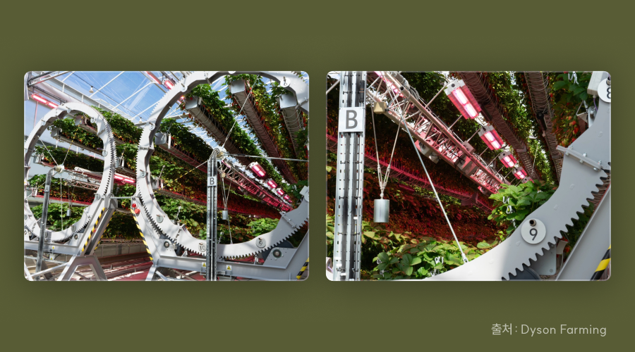 이 회전식 설계는 단순히 균일한 빛 노출을 보장하는 것을 넘어, 다이슨이 더 작은 공간에서 더 많은 딸기를 재배할 수 있게 해줘요. 농장 면적을 최소화하면서 수확량을 극대화하는 거죠.