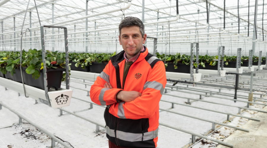 링컨셔 캐링턴에 있는 다이슨 파밍의 온실은 약 10만 5천 제곱미터(약 3만 2천 평)예요. 길이 760미터의 거대한 유리 온실 안에 1,456개의 딸기 줄과 122만 5천 그루의 딸기 묘목이 자라고 있습니다. 연간 1,250톤 이상의 고품질 영국산 딸기를 생산할 계획이에요.