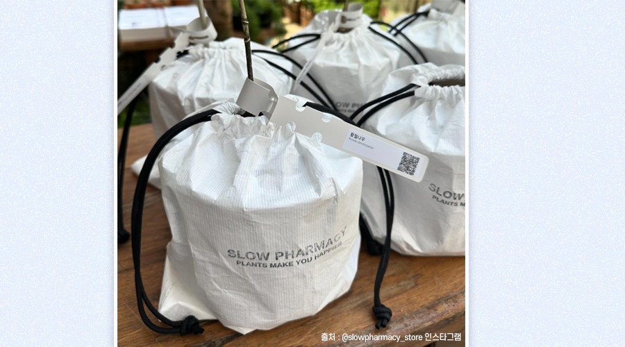 슬로우파마씨에서는 ‘나무와 나’라는 주제로 매달 새로운 식물들을 선보이고 있어요. 쉽게 접하기 어려운 식물을 소개해 줄 뿐만 아니라 타이백 소재의 파우치에 정성스럽게 담아낸 모습은 그냥 지나칠 수 없죠.