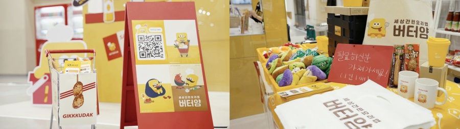 이루다마케팅은 마트 컨셉의 부스를 기획하여 고객들이 버터얌의 앱 서비스를 자연스럽게 경험할 수 있도록 했고요. 마트 컨셉을 보다 생생하게 구현하고자 디테일한 소품까지 하나하나 신경 썼습니다. 이 밖에 푸드위크를 방문하는 고객들을 위한 무료 굿즈 제공으로 푸드위크를 방문한 고객들의 발길을 사로잡는데 성공~