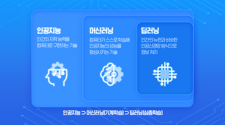 정리하면 인공지능이라는 큰 범주 안에 데이터 학습 절차인 ‘머신러닝’과 가장 세부적인 부분이자 정보 출력 방식인 ‘딥러닝’이 포함되는 개념이랍니다👩🏫