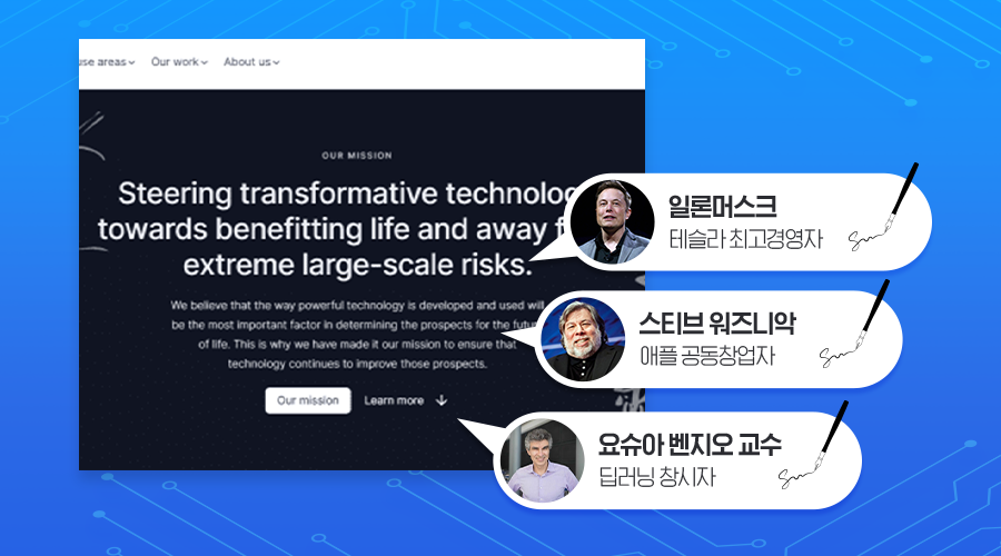 미국 비영리단체인 미래생명연구소(FLI)는 생성 AI로 인한 허위정보 확산, 해킹, 대규모 실업 등에 대한 우려를 바탕으로 GPT-4 기능을 넘어서는 AI 개발을 6개월간 잠정 중단하자는 공개서한을 발표한 것인데요. 당시 FLI는 지지자를 3천 명까지 모았다고 주장하면서 윤리적·안전성 문제가 해결될 때까지 생성 AI 개발을 잠시 멈추자는 입장을 밝혔죠🤝