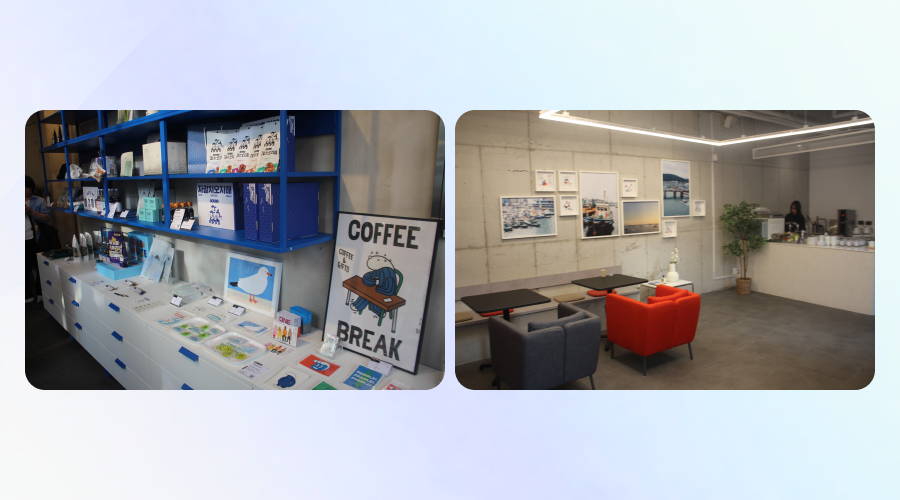 2층은 로컬 편집샵으로 여러 로컬브랜드의 제품을 진열돼 있었고요. 로컬 카페와 코워킹스페이스도 위치해 쉬거나 혼자 조용히 업무를 볼 수 있었습니다.