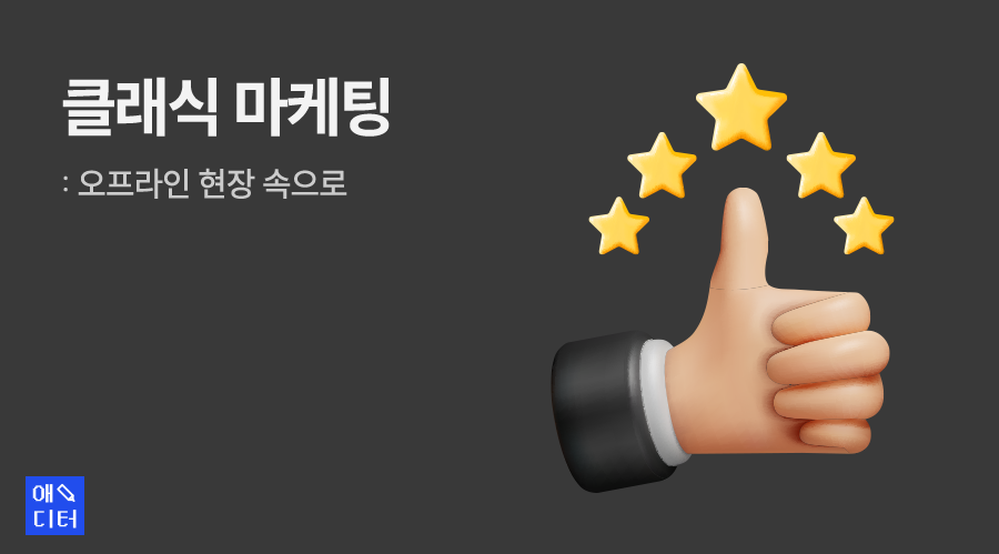 특히 상품을 직관적으로 확인할 수 있는 오프라인 클래식 마케팅이 상품에 대한 신뢰를 전달하기 더 수월하지 않을까 싶은데요. 내 상품의 오프라인에서의 전략이 필요할 때, 한번쯤은 클래식한 방식으로 마케팅을 해보는 건 어떨까요?