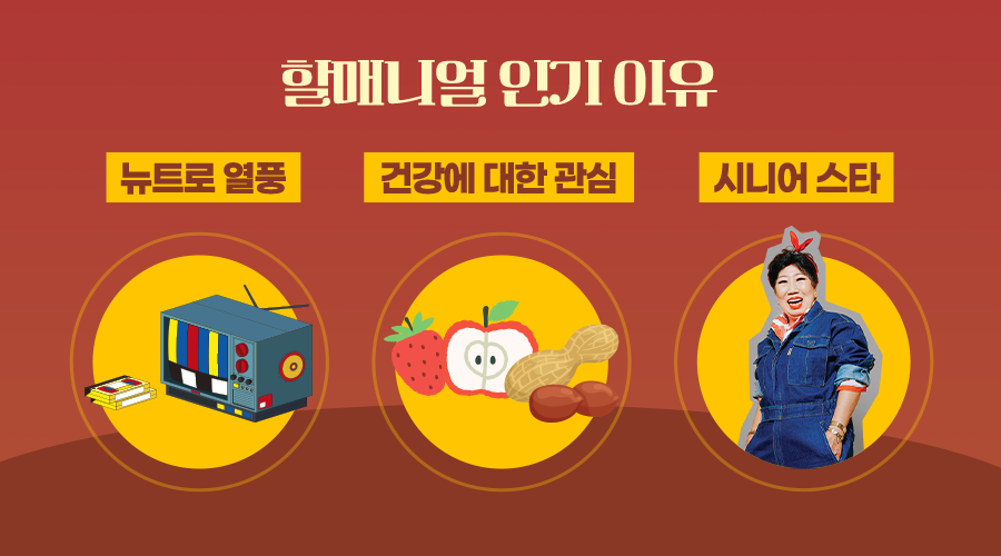 할매니얼 트렌드는 MZ세대에게 신선하고, 재미있는 문화로 다가왔고요. 여기에 오래된 것들을 '힙'하게 받아들이고, 새롭게 재해석해 즐기는 뉴트로 열풍도 할매니얼의 인기를 견인했어요.