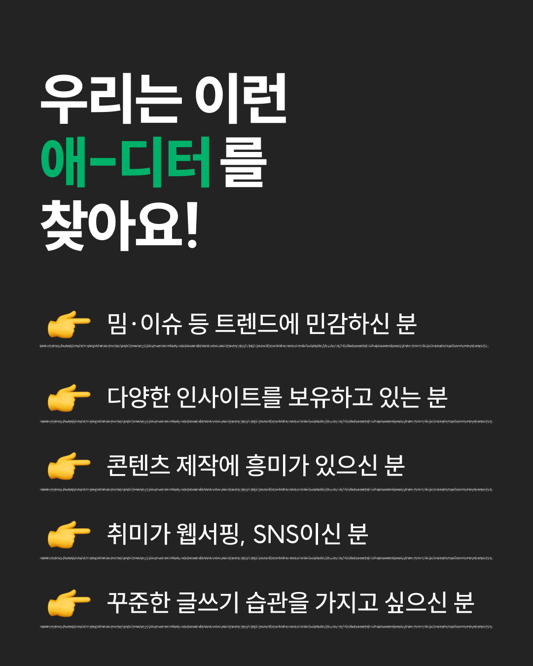 페이지를 채워갈 애-디터를 찾습니다!