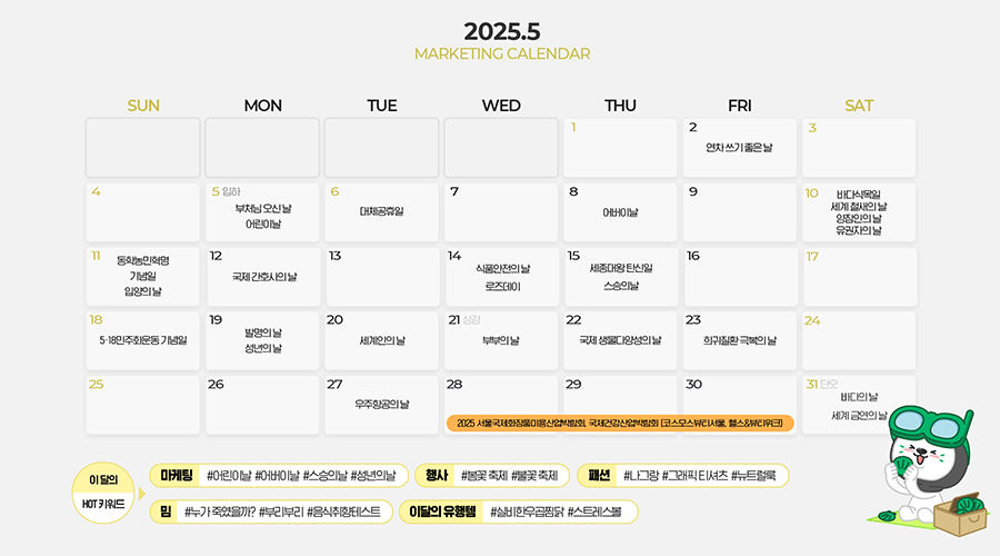 5월 28일 ~ 5월 30일 : 2025 서울국제화장품미용산업박람회, 국제건강산업박람회 (코스모스뷰티서울, 헬스&뷰티위크)