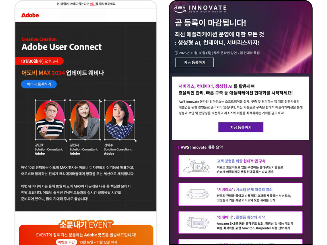 에디터가 타겟에 광고 소재를 소개하는 뉴스레터 광고로