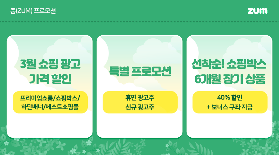 - 내용 : 광고비 40% 할인 혜택 및 매월 15일 보너스 구좌 지급