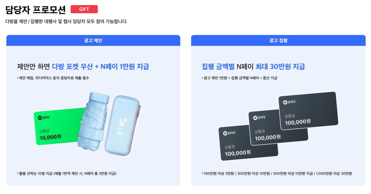 - 광고 집행 : 집행 금액별 네이버페이 최대 30만원 지급