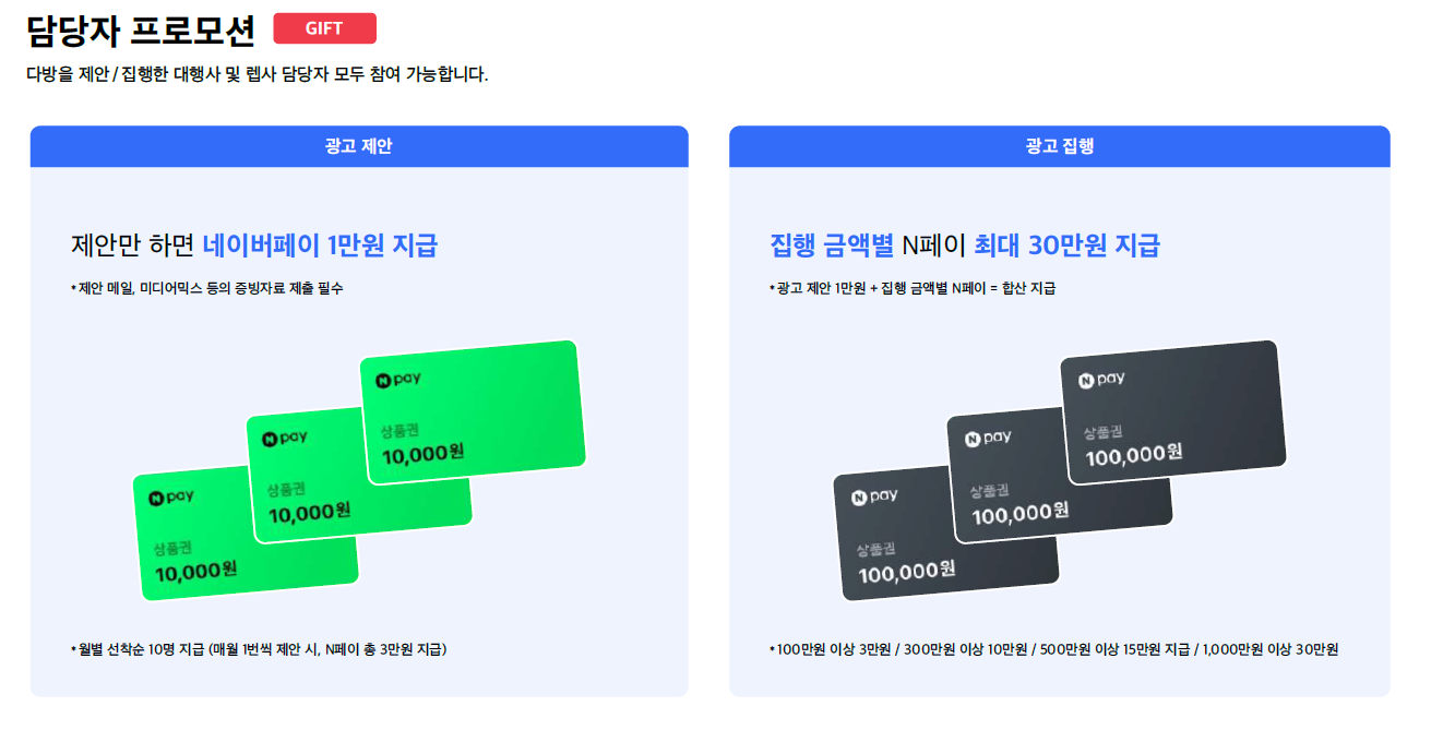 - 광고 집행 : 집행 금액별 네이버페이 최대 30만원 지급
