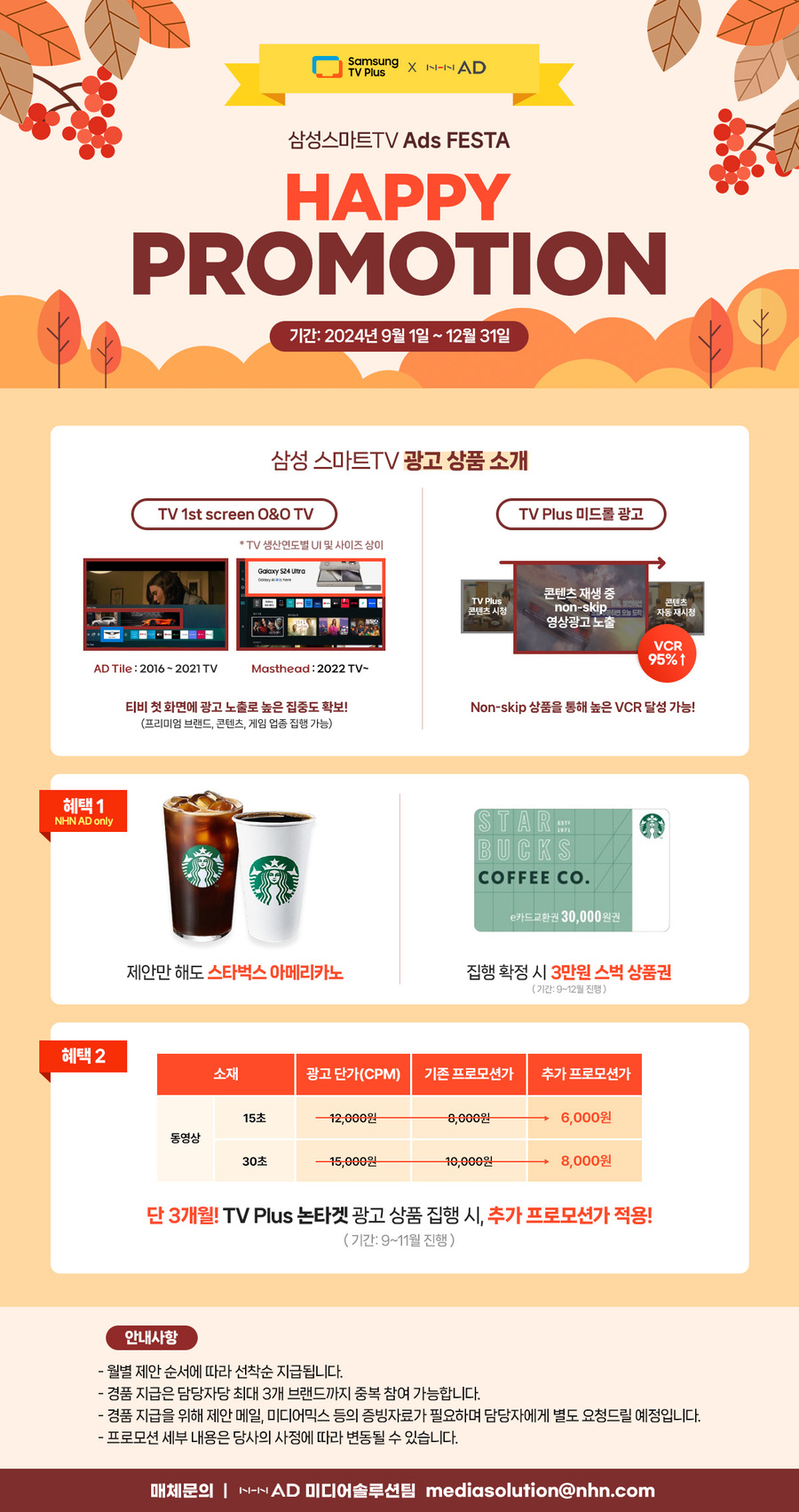 - TV Plus 논타겟 광고 상품(15/30s) 단가 할인 (9~11월)