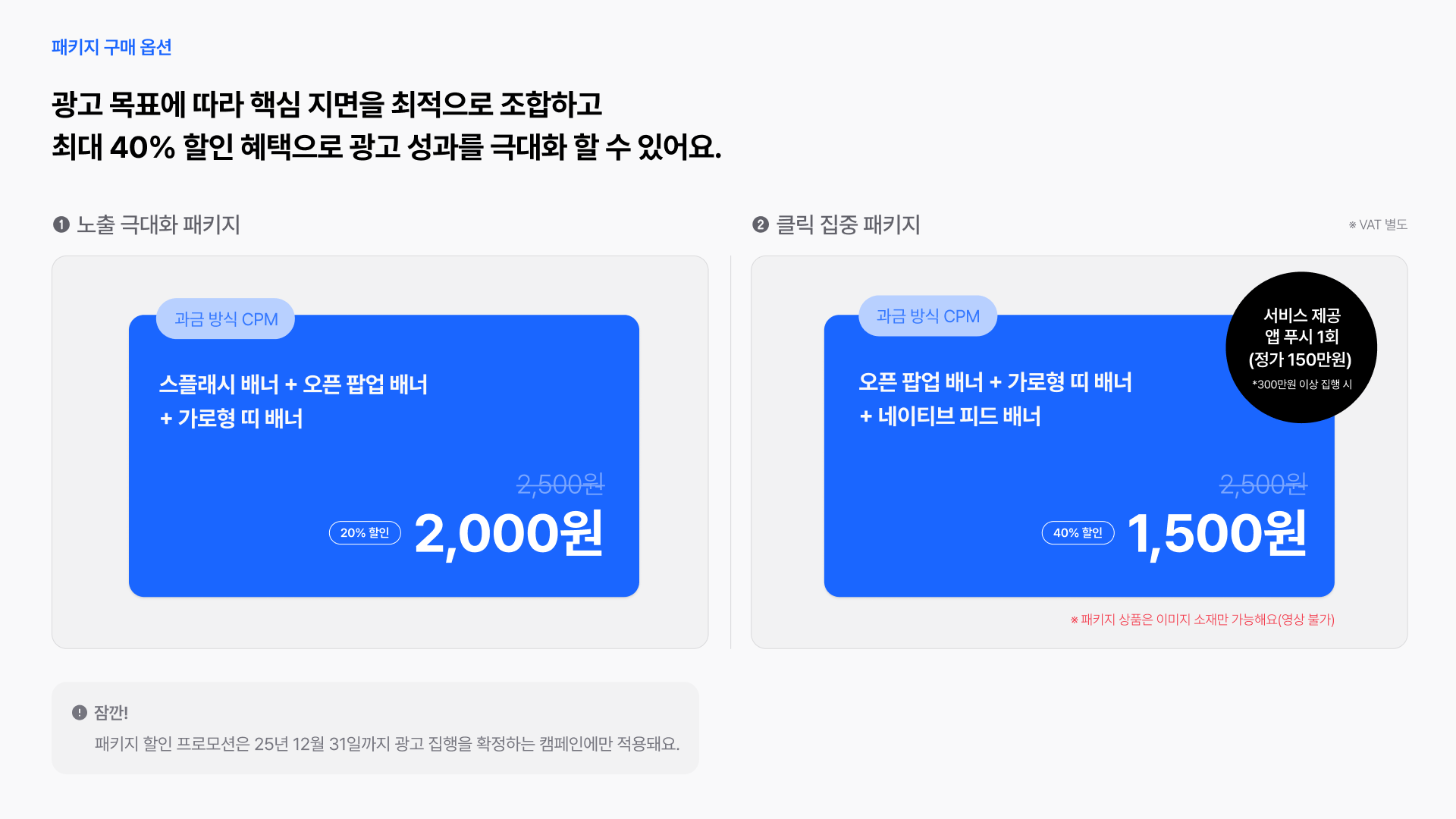 단가: CPM 2,500원 → 1,500원 (40% 할인)