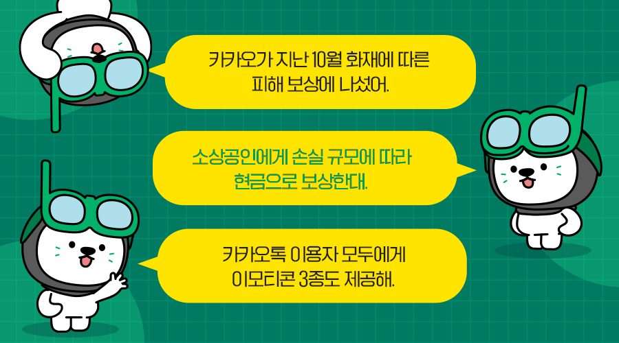 카카오가 지난 10월 판교 SK C&C 데이터센터 화재에 따른 서비스 장애 피해를 신고한 소상공인들에게 일괄적으로 현금 보상해요.