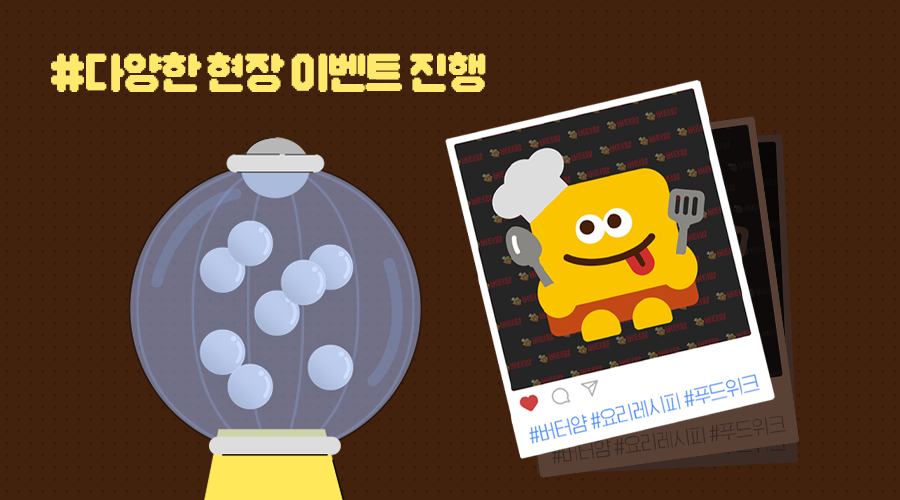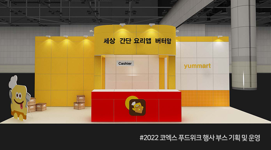 이루다마케팅은 마트 컨셉의 부스를 기획하여 고객들이 버터얌의 앱 서비스를 자연스럽게 경험할 수 있도록 했고요. 마트 컨셉을 보다 생생하게 구현하고자 디테일한 소품까지 하나하나 신경 썼습니다. 이 밖에 푸드위크를 방문하는 고객들을 위한 무료 굿즈 제공으로 푸드위크를 방문한 고객들의 발길을 사로잡는데 성공~