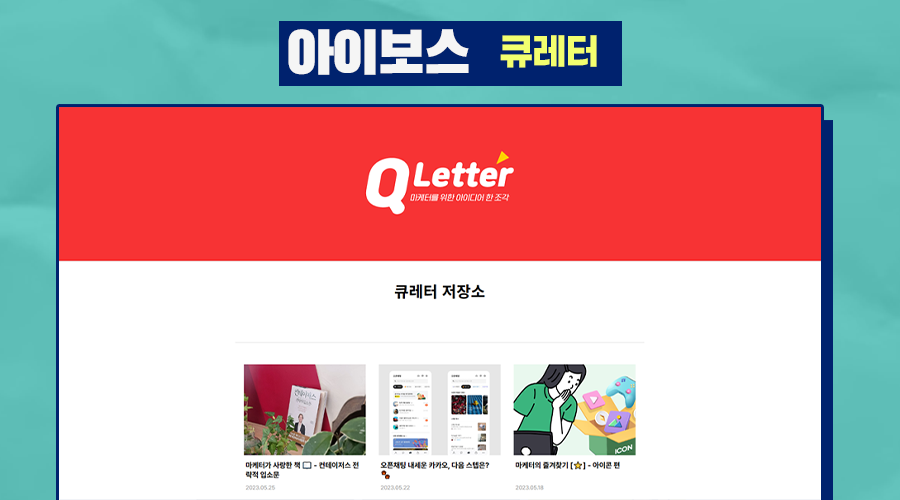 국내 대표 마케팅 커뮤니티 아이보스에서 발행하는 뉴스레터인 큐레터는 '마케터를 위한 아이디어 한 조각'이라는 슬로건에서 알 수 있듯이 마케팅에 관심 있는 사람들에게 유용한 뉴스레터에요. 마케팅 찐 전문가들의 노하우를 받아볼 수 있어 브랜드 마케터들의 업무 활용도가 높아요.