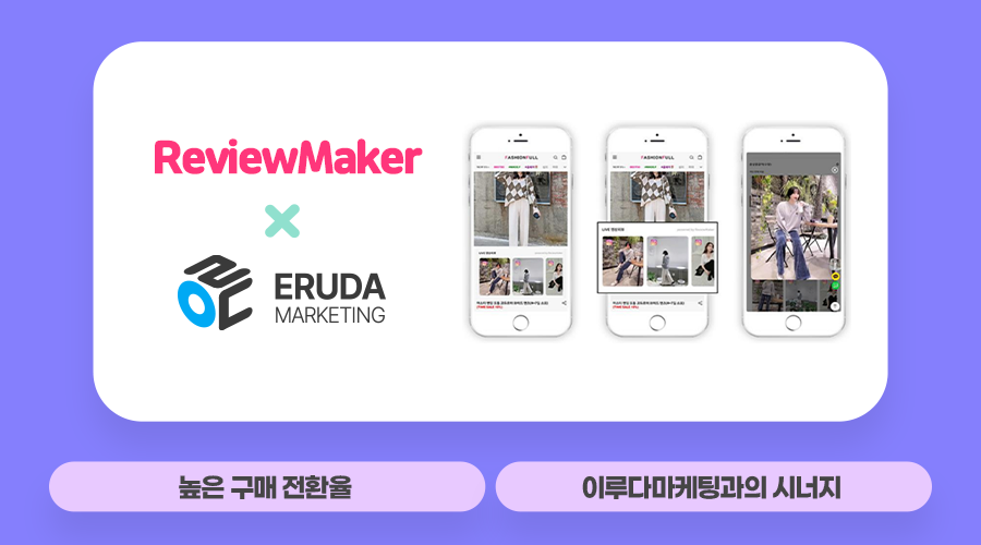 높은 구매 전환율이 필요하다면? 리뷰메이커 플랫폼을 추천해요! 리뷰메이커는 인스타그램을 기반으로 인플루언서 협찬 캠페인을 열고, 제작된 리뷰 콘텐츠를 2차 활용할 수 있도록 제공하는 플랫폼으로 최근 NO.1 종합 디지털 마케팅 에이전시 이루다마케팅의 인수로 양사의 시너지가 기대되고 있어요.
