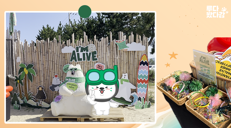 양양 서피비치에서 다양한 팝업스토어가 진행되고 있었는데요. 분명 빈손으로 가서, 아임얼라이브 팝업스토어를 즐기기만 했는데 두 손 가득 굿즈를 챙겨 와버렸습니다. 양양 서퍼비치 저만큼 잘 즐기고 온 사람 없을걸요?! 😁 아임얼라이브X이루다마케팅이 진행한 팝업스토어 마케팅! 터니에디터의 아임얼라이브 팝업스토어 100% 찐후기 지금부터 시작합니다!