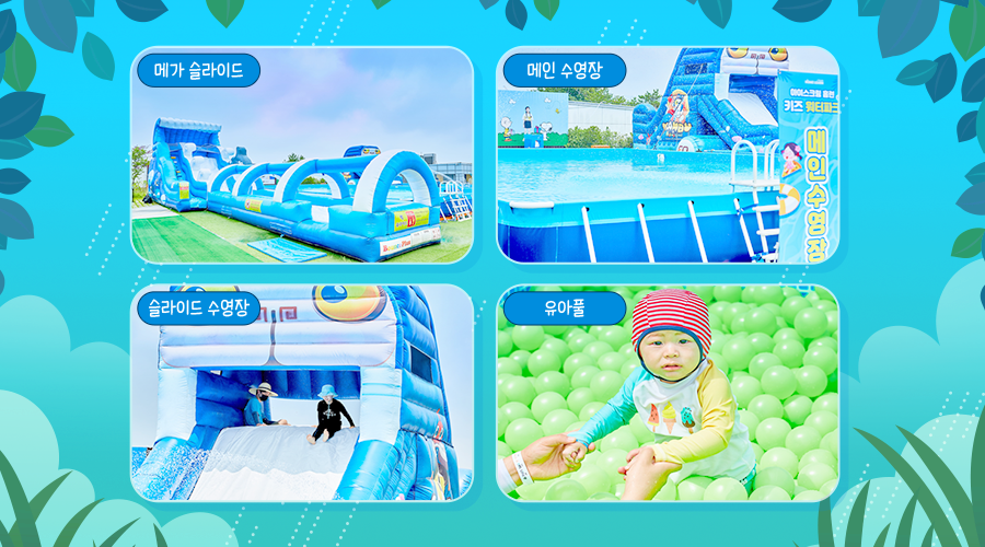 압도적인 크기의 메가 슬라이드와🎢 어린이 키에 맞춘 안전한 수심의 메인 수영장🩱 그리고 물놀이 안전 걱정 없이 즐길 수 있는 유아풀까지!👶 추가로 큰 슬라이드 수영장이 있어 액티비티 한 활동도 즐길 수 있어 방전ZERO 체력빵빵 아이들도 신나게 즐길 수 있어요💪
