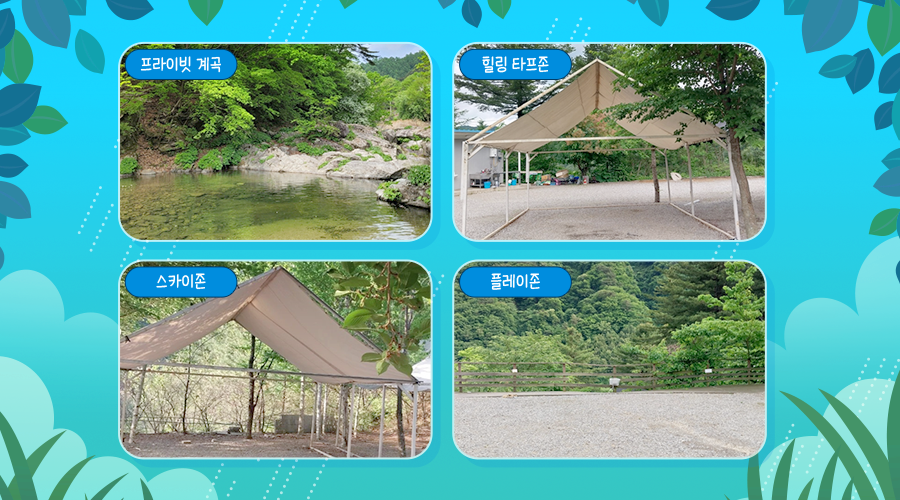 이용객에 한에 프라이빗한 계곡에서 물놀이를 즐길 수 있으며 샤워실 그리고 간단한 식품 및 간식, 생활용품, 캠핑 용품 등을 구입할 수 있는 매점을 부가시설로 이용 가능하다고 해요🤩 텐트가 없는 분들을 위해서는 각종 관련 물품을 대여할 수 있다고 하니 참고하세요~