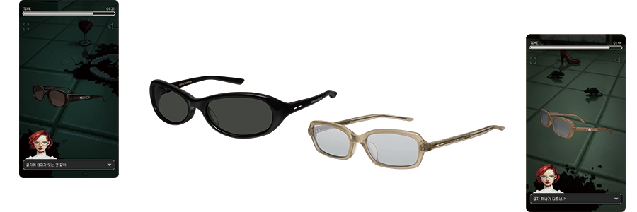 게임을 플레이하다 보면 곳곳에서 이번 시즌 출시 모델들을 자연스럽게 만날 수 있었습니다. 안경이라는 제품을 게임 속에 이렇게 녹여낸 점이 특히 인상적이었습니다.