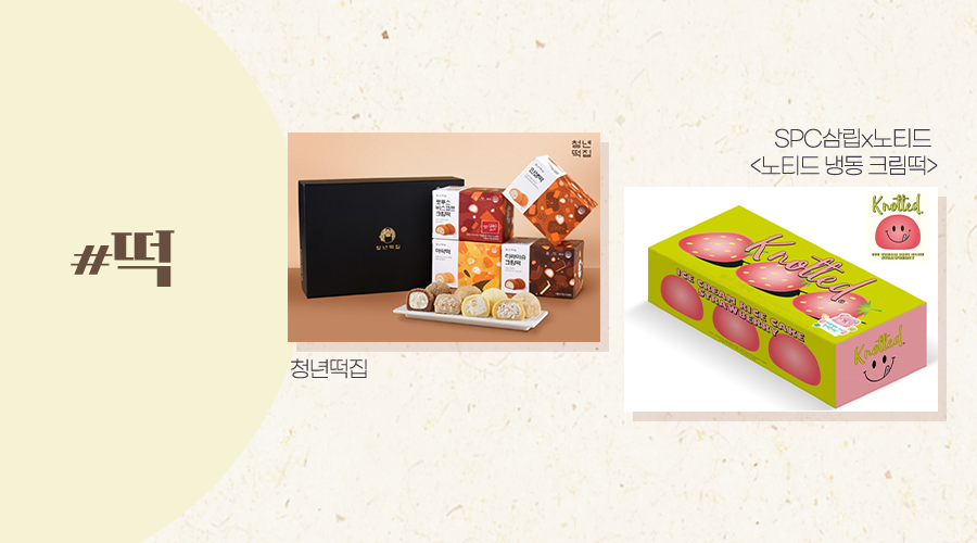 여러분 두 브랜드의 성공전략 눈치채셨나요? 할매니얼 트렌드를 이끄는 주역이 MZ세대인 만큼 젊은 세대의 입맛을 고려해 생크림, 카스텔라, 티라미슈 등 서양재료를 떡에 접목한 퓨전 제품을 선보였다는 거예요! MZ세대는 기존 떡과 다른 차별화된 퓨전떡의 매력에 퐁~당 빠졌답니다💕