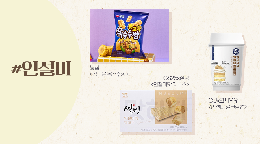 농심은 지난 2월, 달콤한 옥수수깡에 고소한 콩고물을 더한 '콩고물옥수수깡'을 GS25 편의점은 설빙과의 콜라보로 '인절미맛 웨하스'를 선보였어요. 특히, CU와 연세우유의 콜라보로 탄생한 '인절미 생크림컵'은 출시 한 달 만에 누적 판매량 30만 개를 돌파했어요. (꼬수운건 못 참지!🙂)