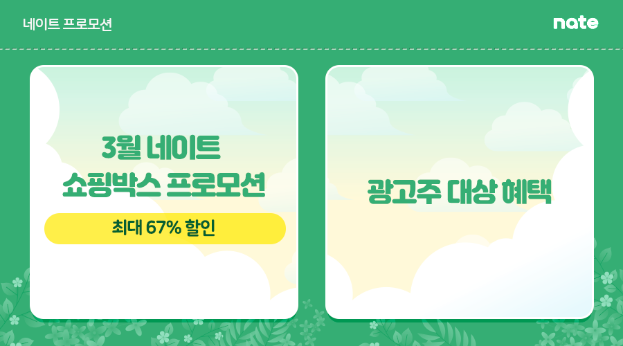 포털 사이트 네이트(Nate.com)의 메인페이지에 노출되는 썸네일 이미지형 광고로 네이트의 쇼핑 메인페이지, 각 섹션 상세페이지 통해 동시 노출