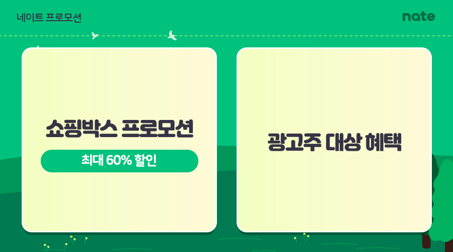 포털 사이트 네이트(Nate.com)의 메인페이지에 노출되는 썸네일 이미지형 광고로 네이트의 쇼핑 메인페이지, 각 섹션 상세페이지 통해 동시 노출
