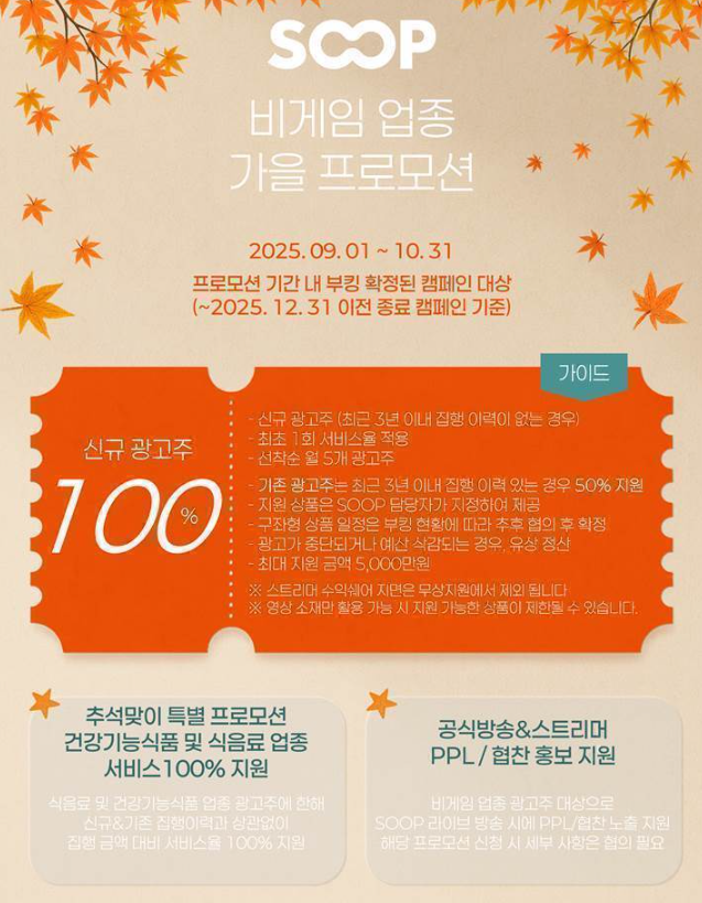 📢 SOOP 추석맞이 비게임 업종 가을 프로모션