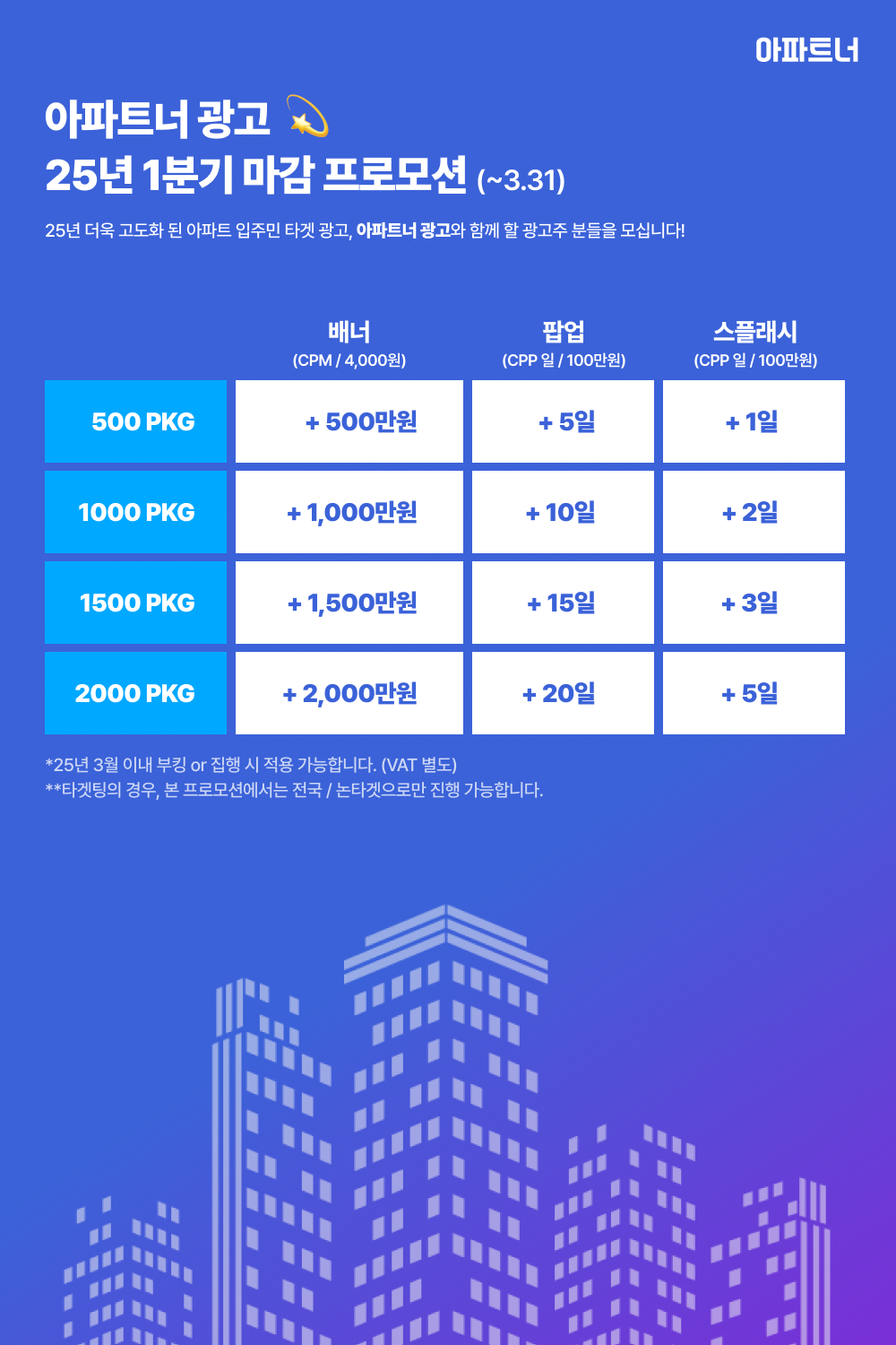 ✅ 아파트너 광고 25년 1분기 마감 프로모션